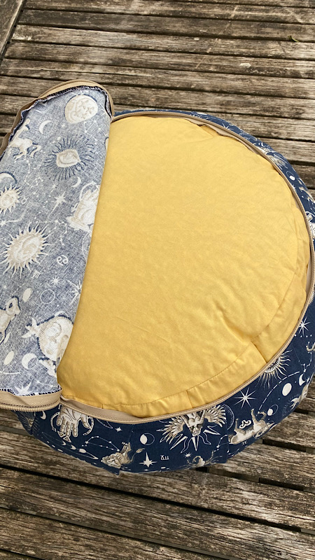 ➡️ Zafu 100% modulable, déhoussable, lavable, rembourrage accessible et doté d’une poignée de transport.