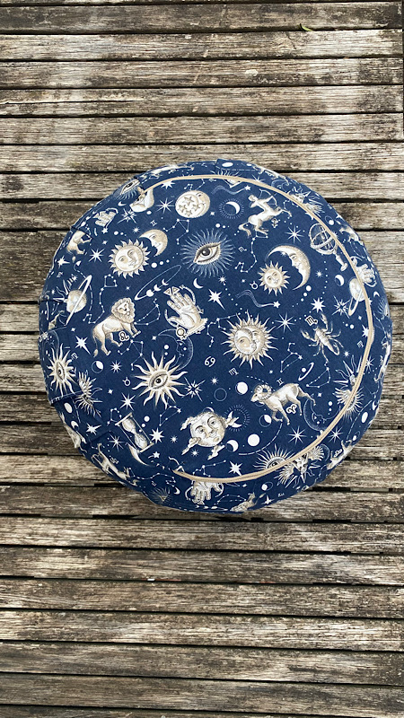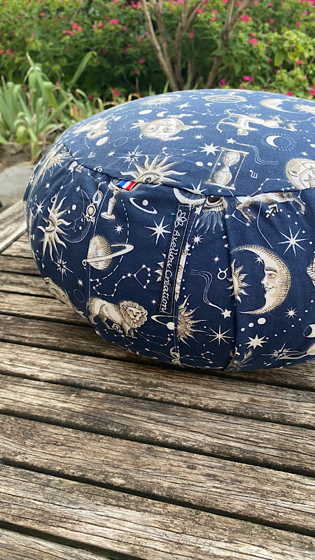 Ce zafu sera votre transport élégant et coloré pour vos voyages en méditation ! Il sera aussi magnifique et très confort en coussin de sol.